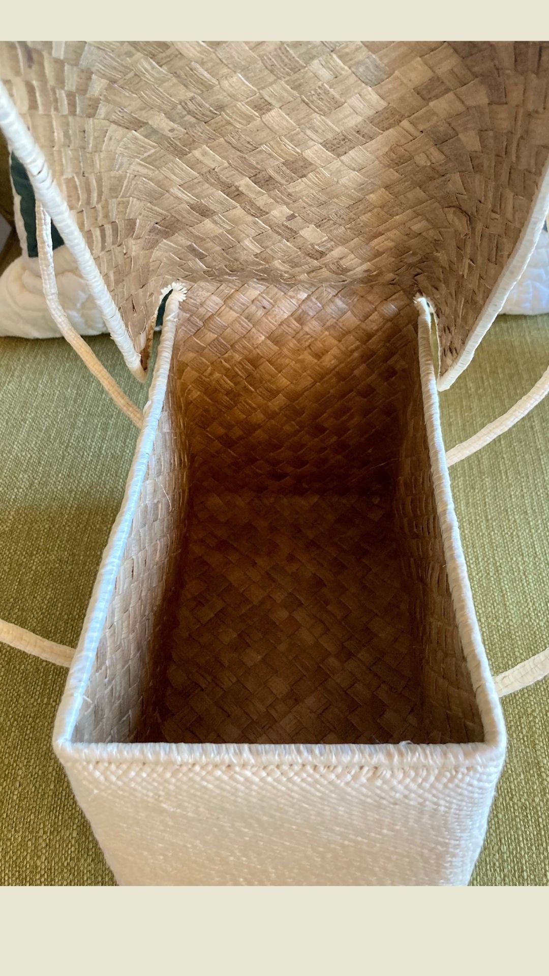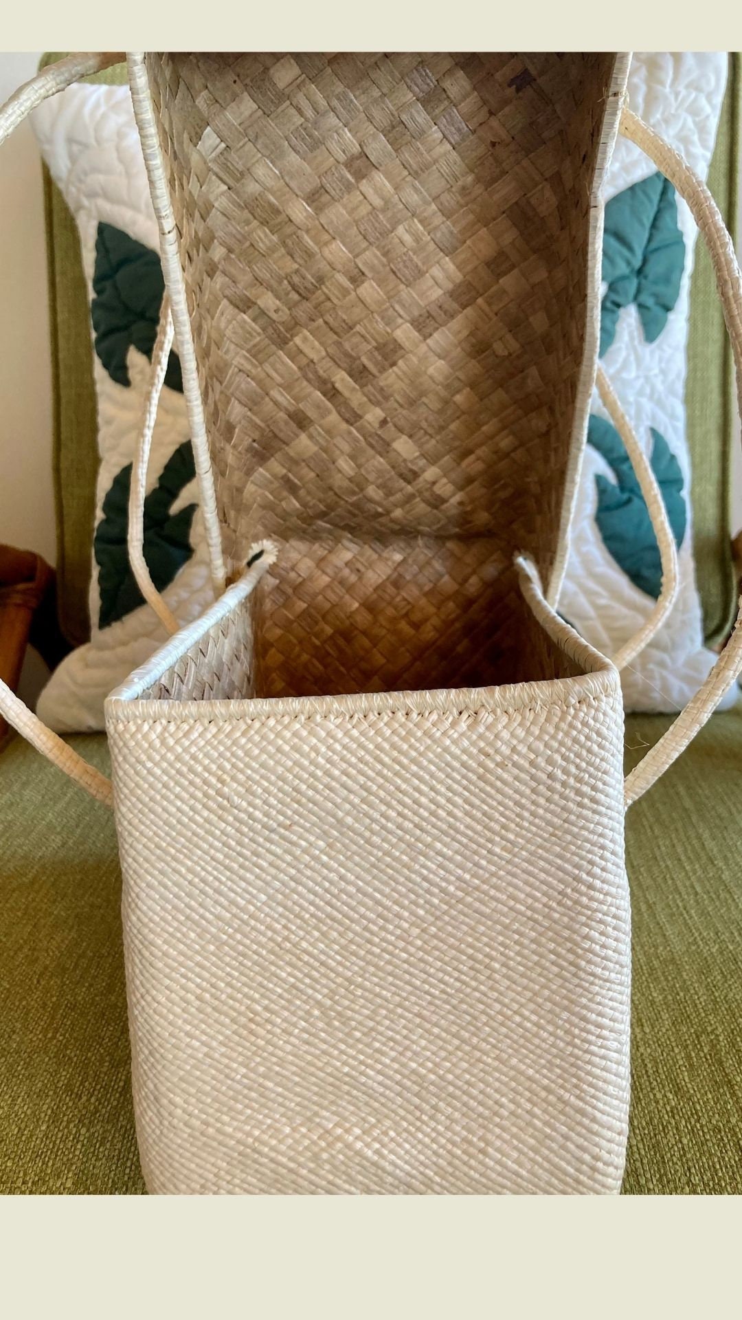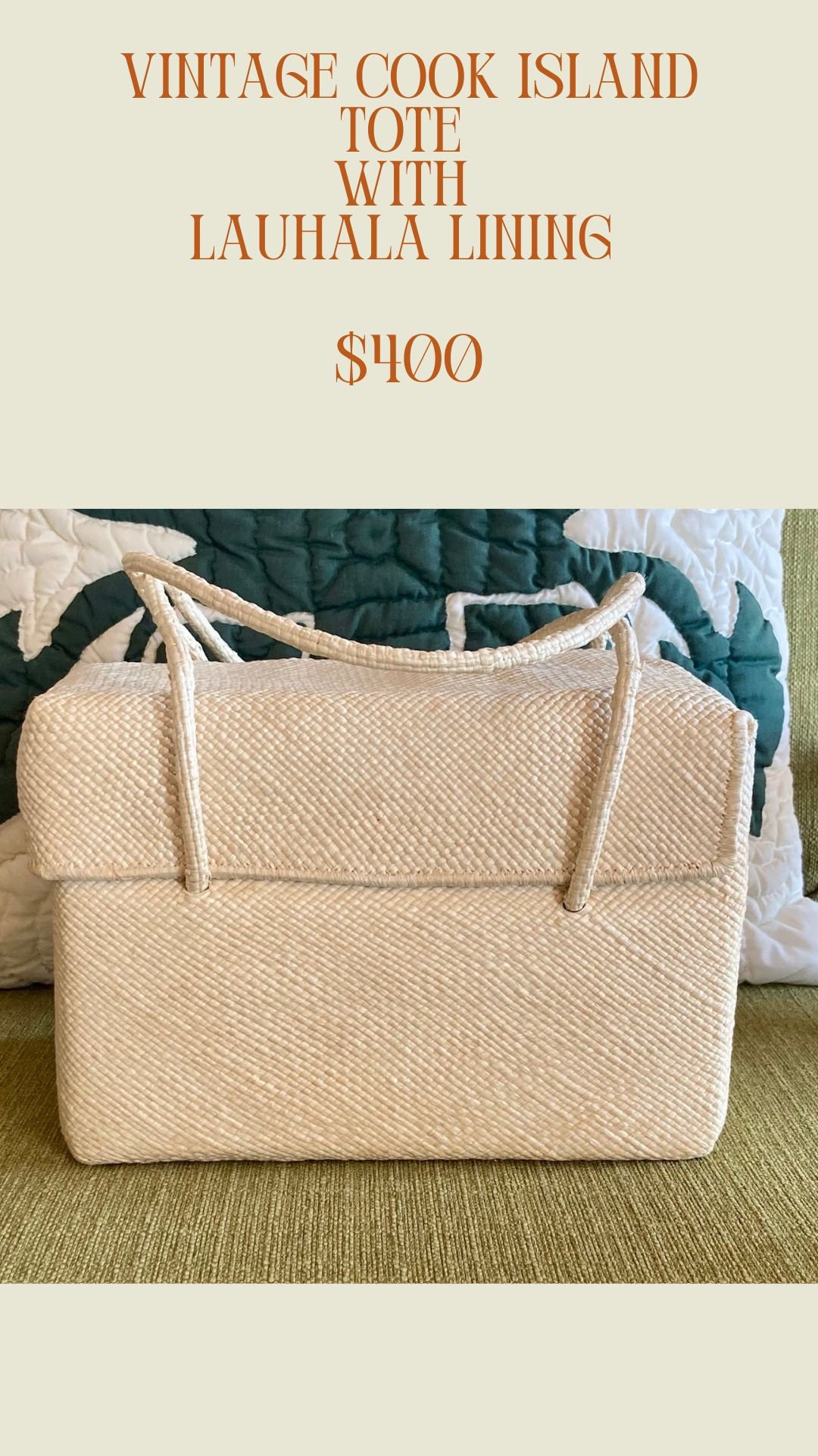 From the Big island of Hawaii. Fine weave cook island tote lined with woven lauhala.