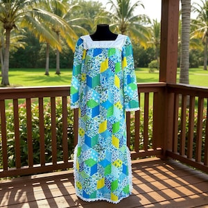 Vintage Tahiti Imports Kaftan. With a color combination of midnight sea and regal red . It is fully lined within, radiating elegance. This pristine vintage gem retains its label, whispering tales of timeless fashion. The tag reads size 16/18. Measurements are as follows: