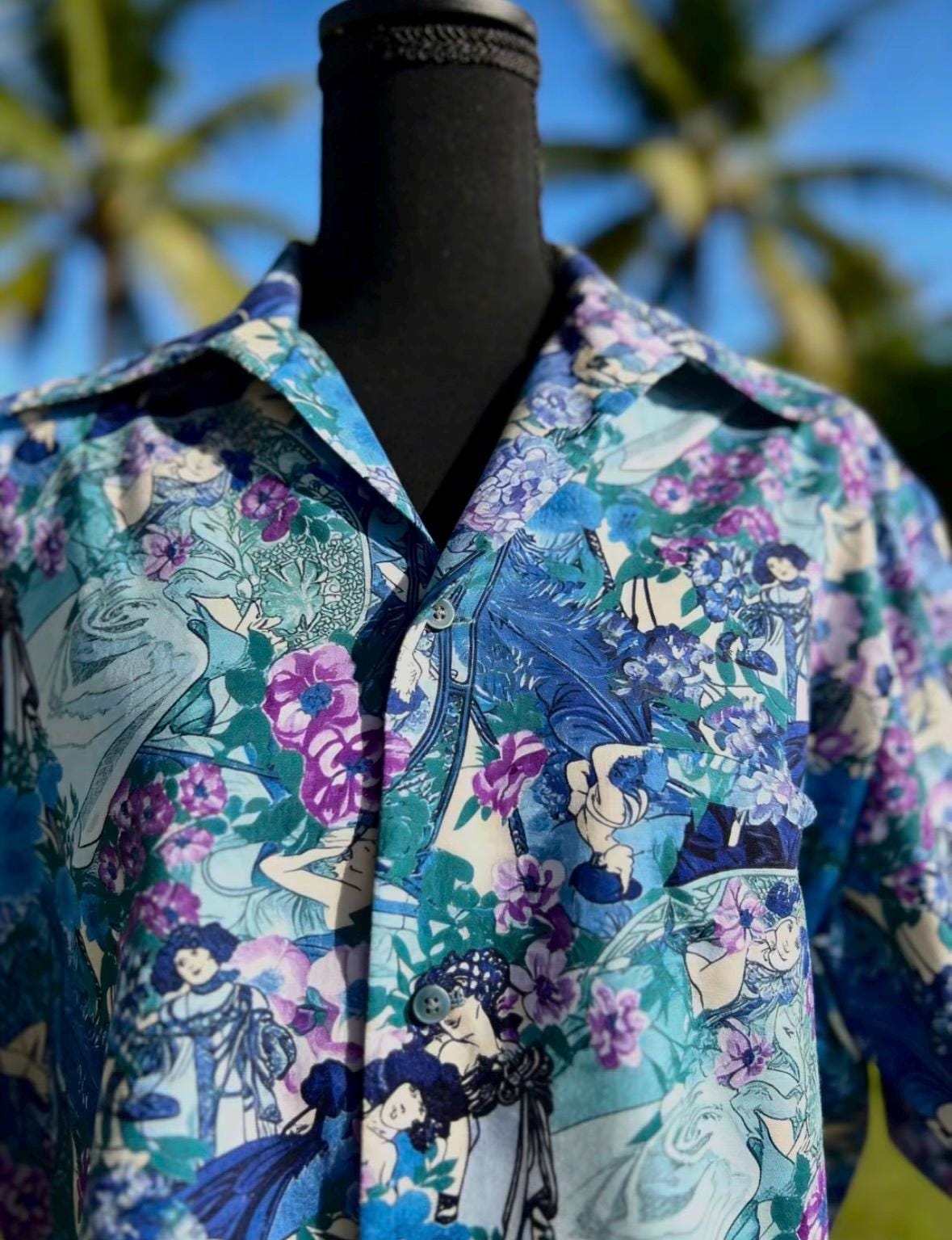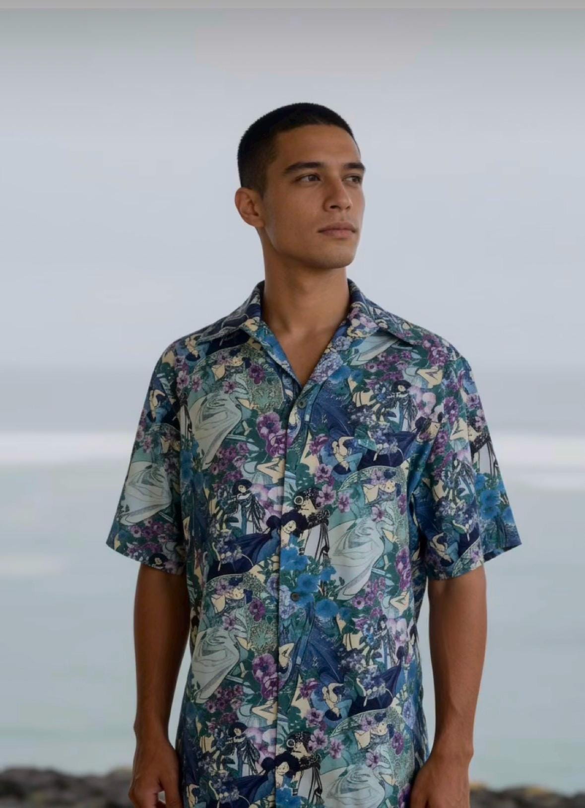 Circa late 1960's Penneys button down aloha shirt. This item was added to the collection for its dreamy, artistic inspiration. excellent- pristine vintage condition. measurements: Label fayed.Label fayed. No size tag-pit to pit 22” sleeve 11”, shoulder to bottom hem 27”